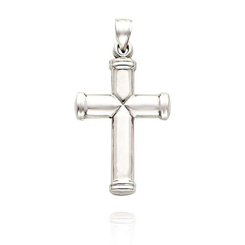 14K White Gold is used to craft this hollow cross pendant. Details at the ends add a special look, and the cross hangs from a polished gold bail.