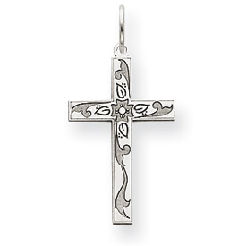 14K White Gold Laser Designed Cross Charm