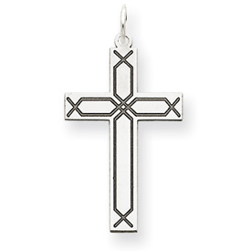 14K White Gold Laser Designed Cross Charm