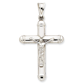 14K White Gold Reversible Crucifix Cross Pendant