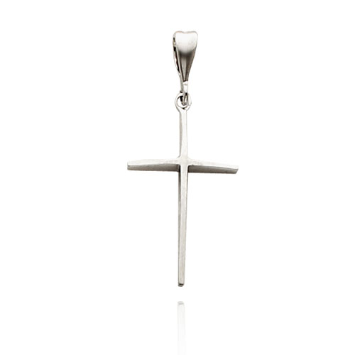 14K White Gold Thin Cross Pendant