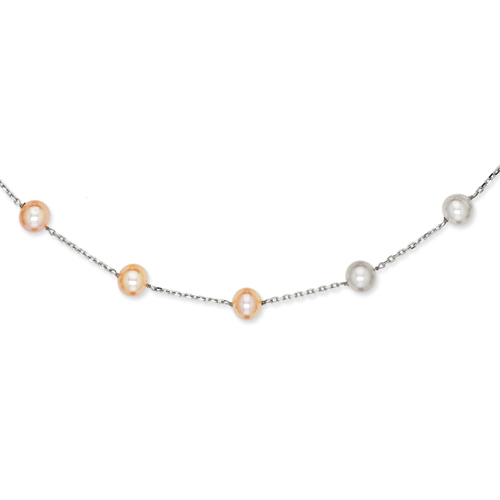 14K White Gold Natural Color Cultured Pearl Necklace chain