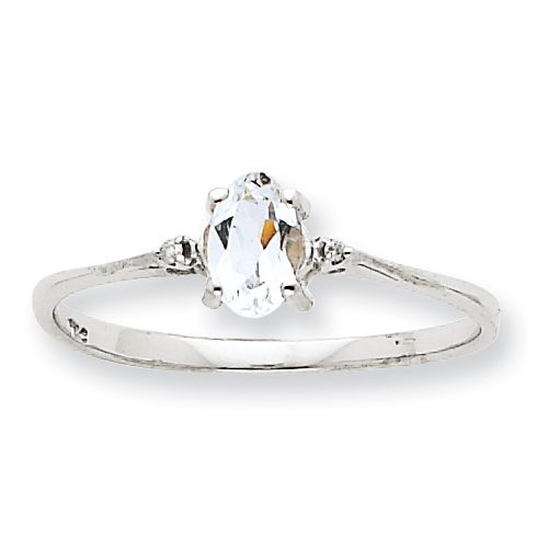 10k White Gold Polished GeniuneDiamond/White Topaz Birthstone Ring