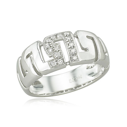 Add something beautiful to your wardrobe with this gorgeous diamond ring. Diamonds adorn a section at the front of the ring for a classy and lustrous look. A polished White Gold band is shaped into unique designs to form this beautiful piece. Add the matching earrings to complete this set.