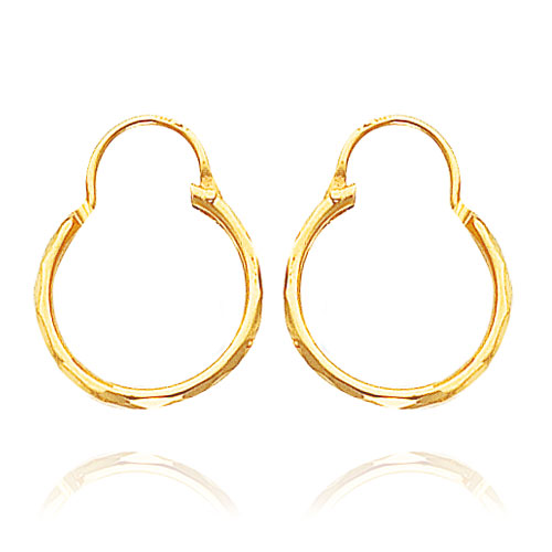 14K Yellow Gold Diamond Cut 1.50x15mm Hoops