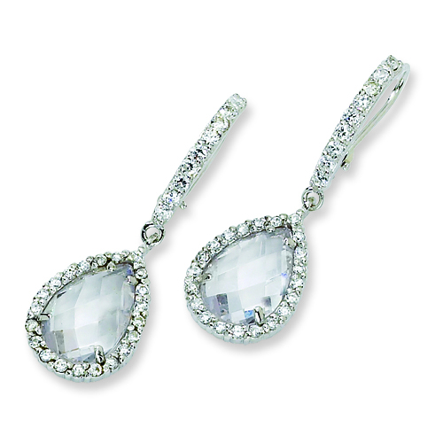 Sterling Silver Checker-Cut CZ French Wire Earrings
