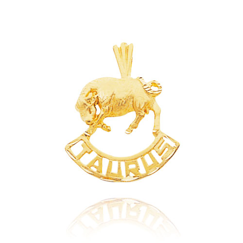 14K Yellow Gold Taurus Banner Zodiac Pendant