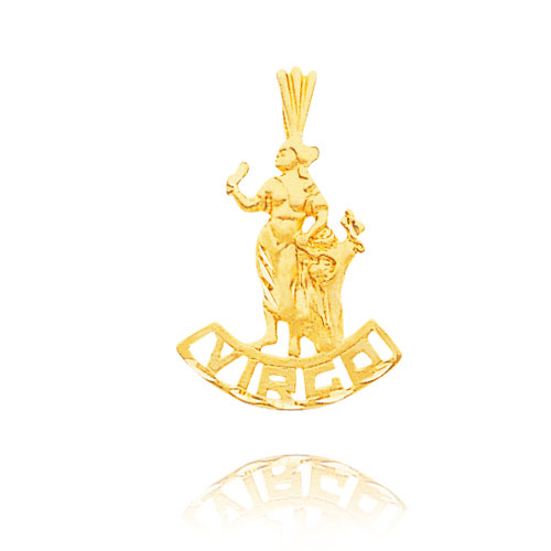 14K Yellow Gold Virgo Banner Zodiac Pendant